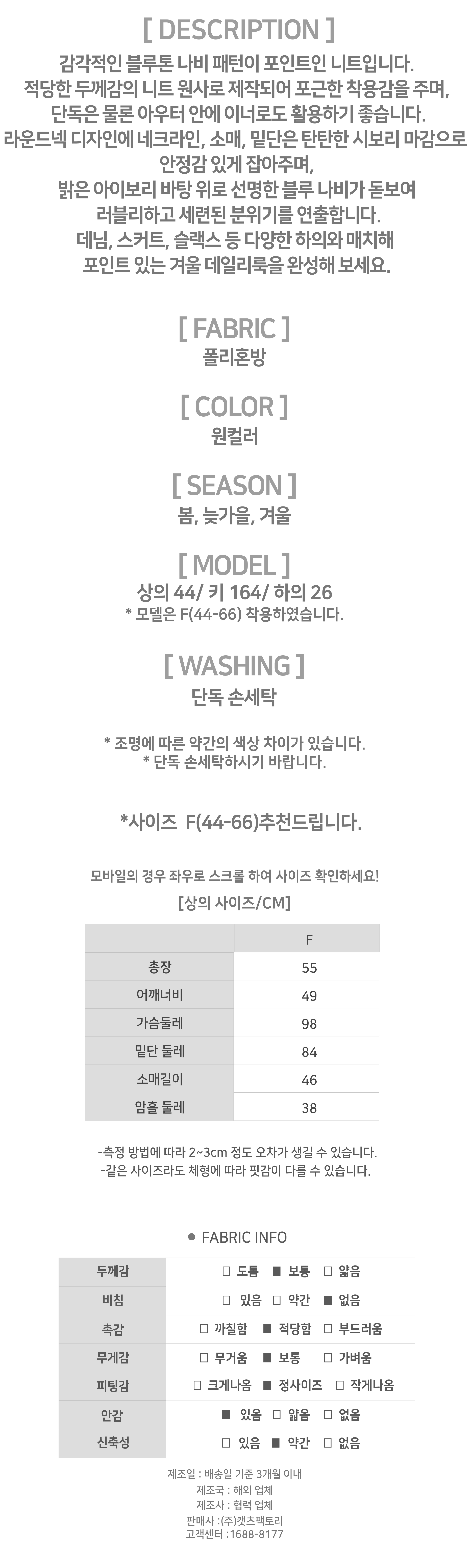 - 상품의 색상은 사용하시는 모니터 사양에 따라 실제 색상과 다소 차이가 있을 수 있으며, 이는 불량의 사유가 되지 않습니다.