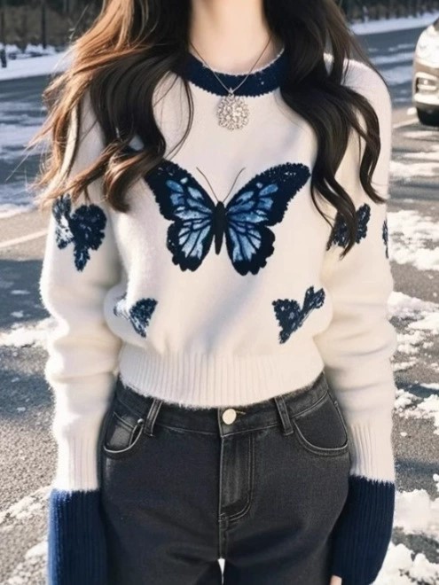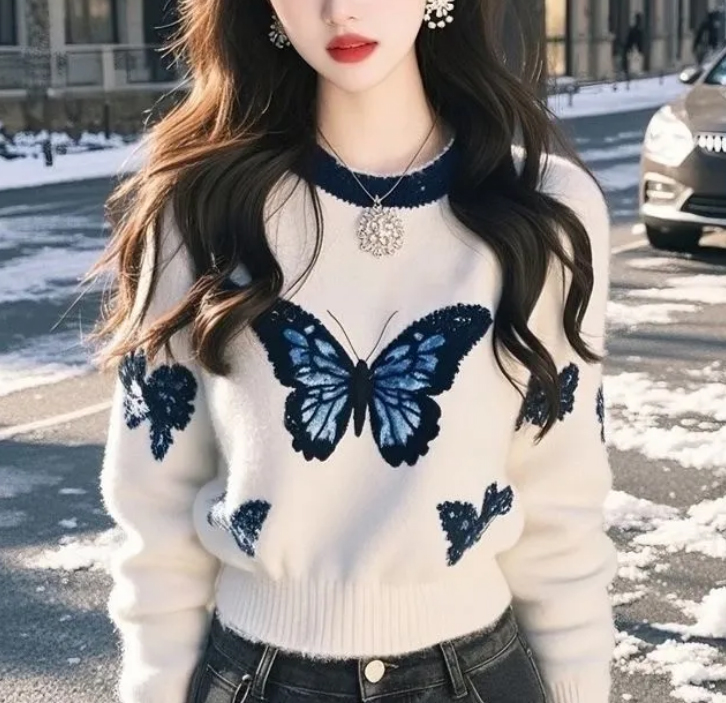블루 버터플라이 라운드 니트