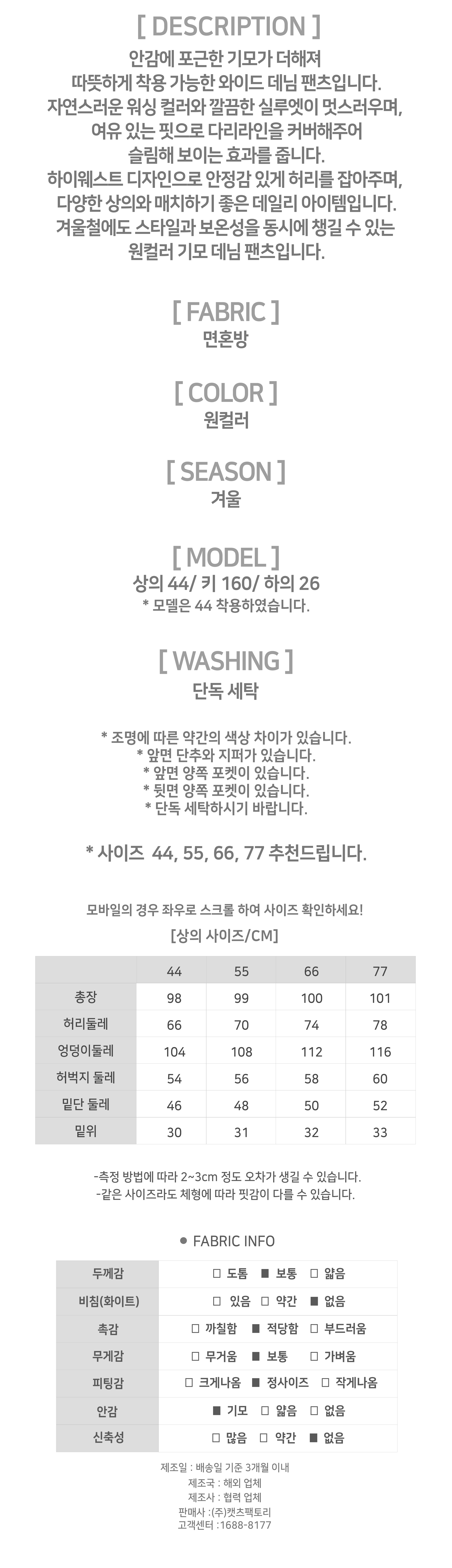 180799 기모 와이드 더블버튼 데님 팬츠 39980