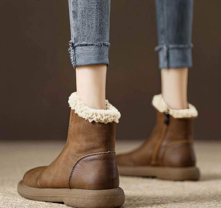 빈티지 무드 양털 앵클 부츠