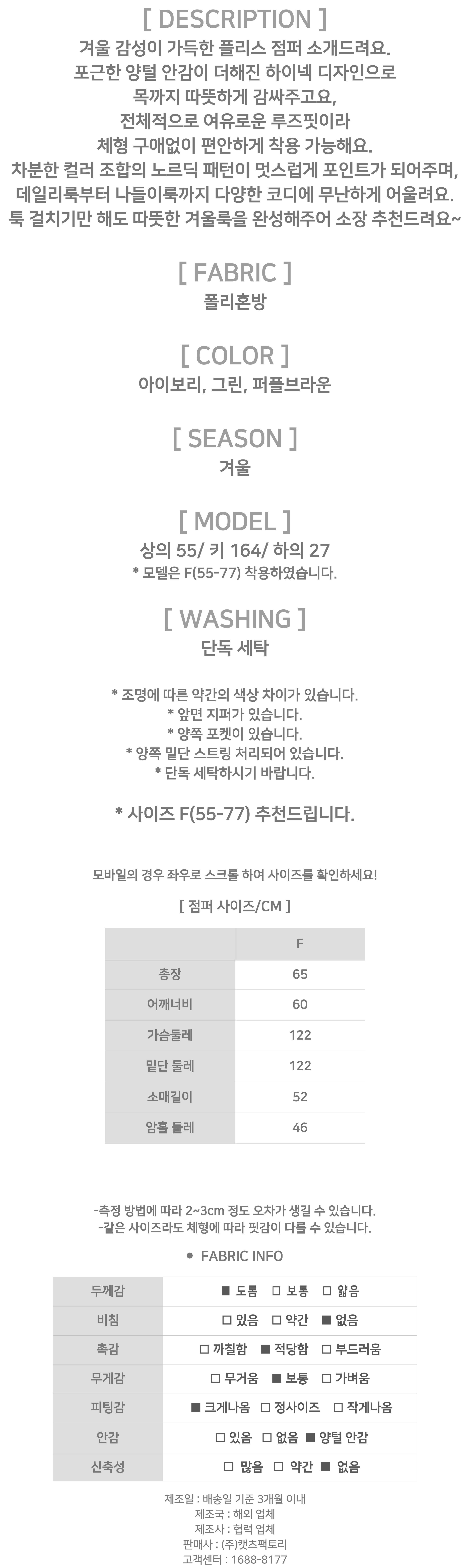 - 상품의 색상은 사용하시는 모니터 사양에 따라 실제 색상과 다소 차이가 있을 수 있으며, 이는 불량의 사유가 되지 않습니다.