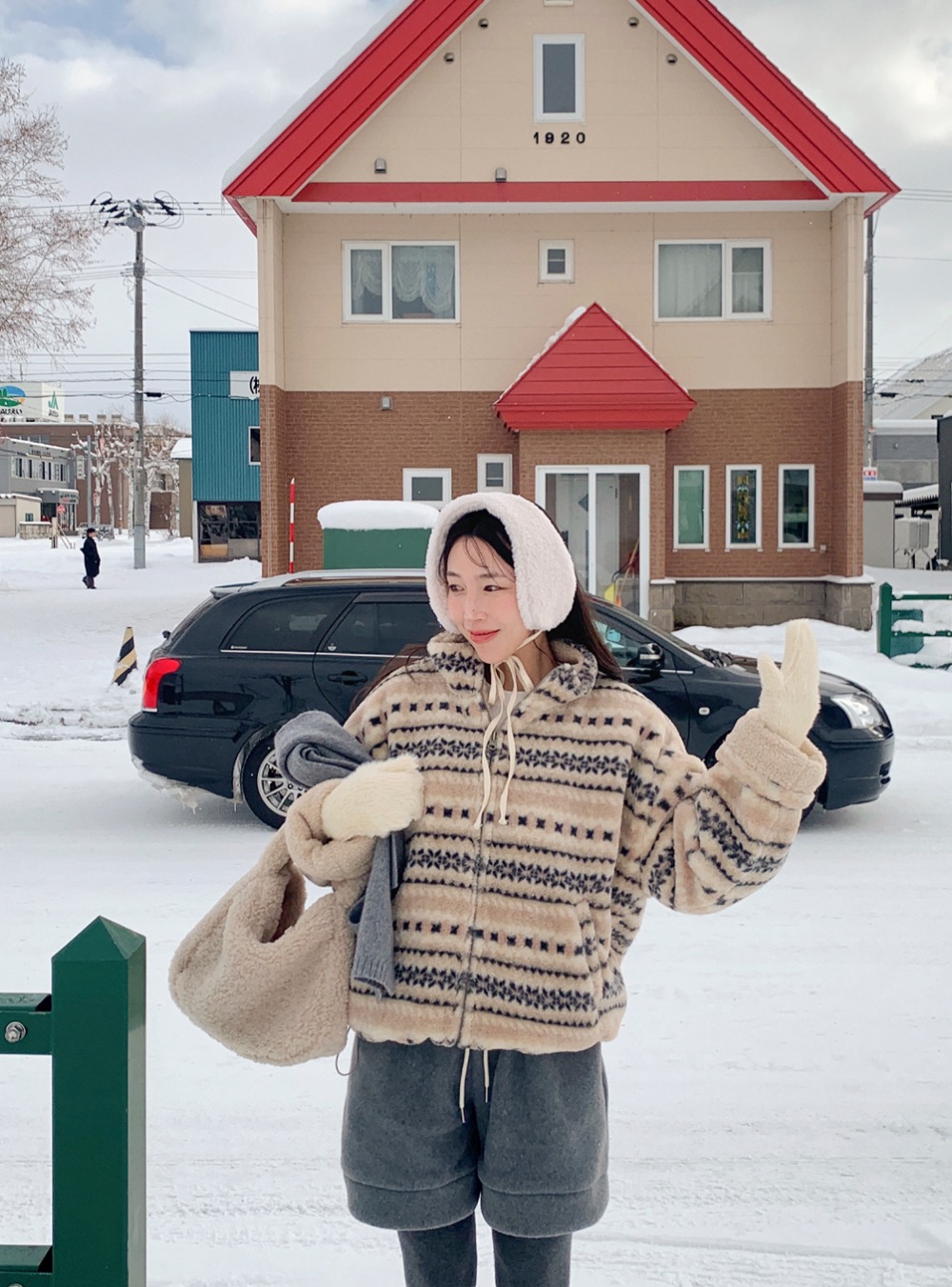 노르딕 하이넥 양털 플리스 점퍼
