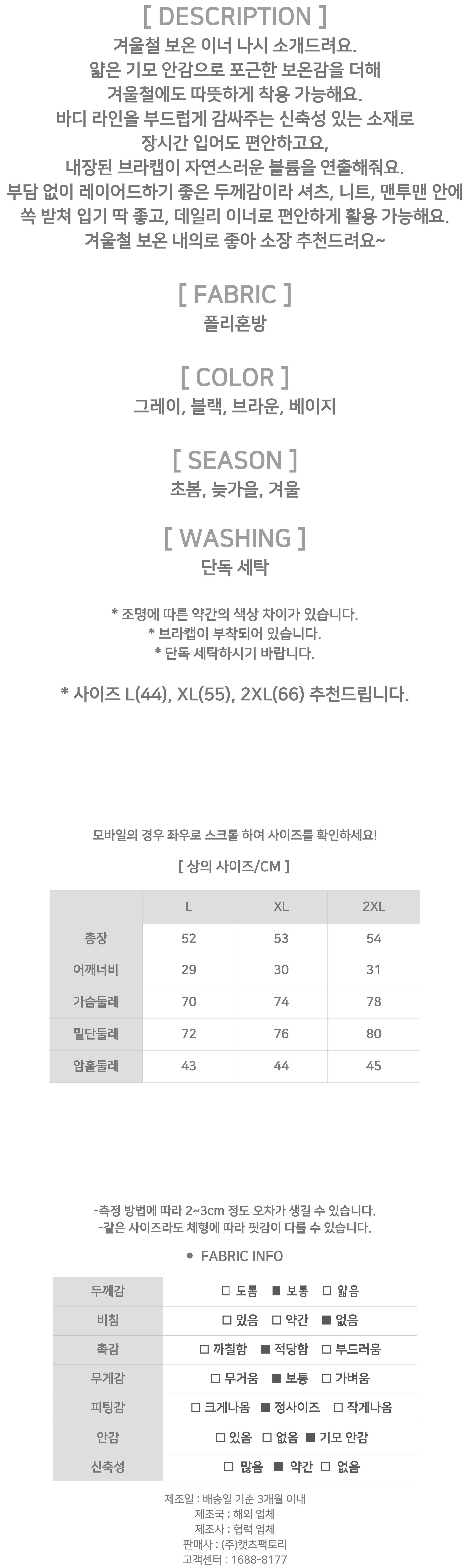 181059 기모 브라캡 소프트 보온 나시 14980