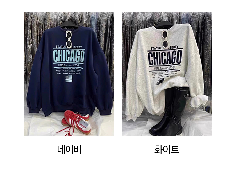 캐주얼 시카고 오버핏 맨투맨[일반/기모 2종류]