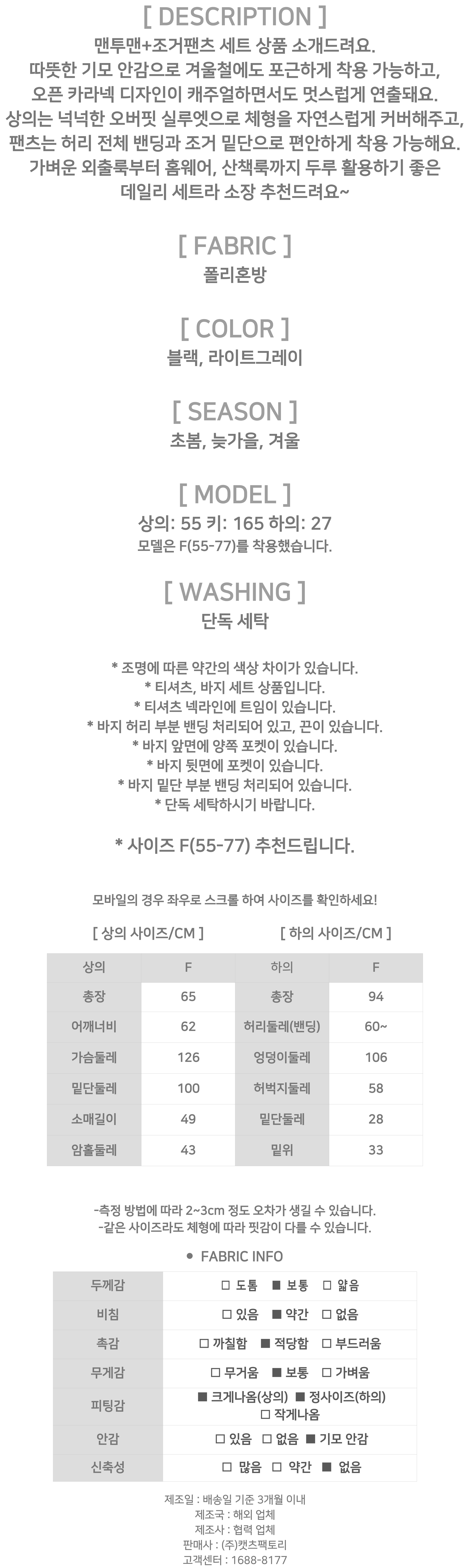 기모 오리지널 맨투맨&조거팬츠 2SET