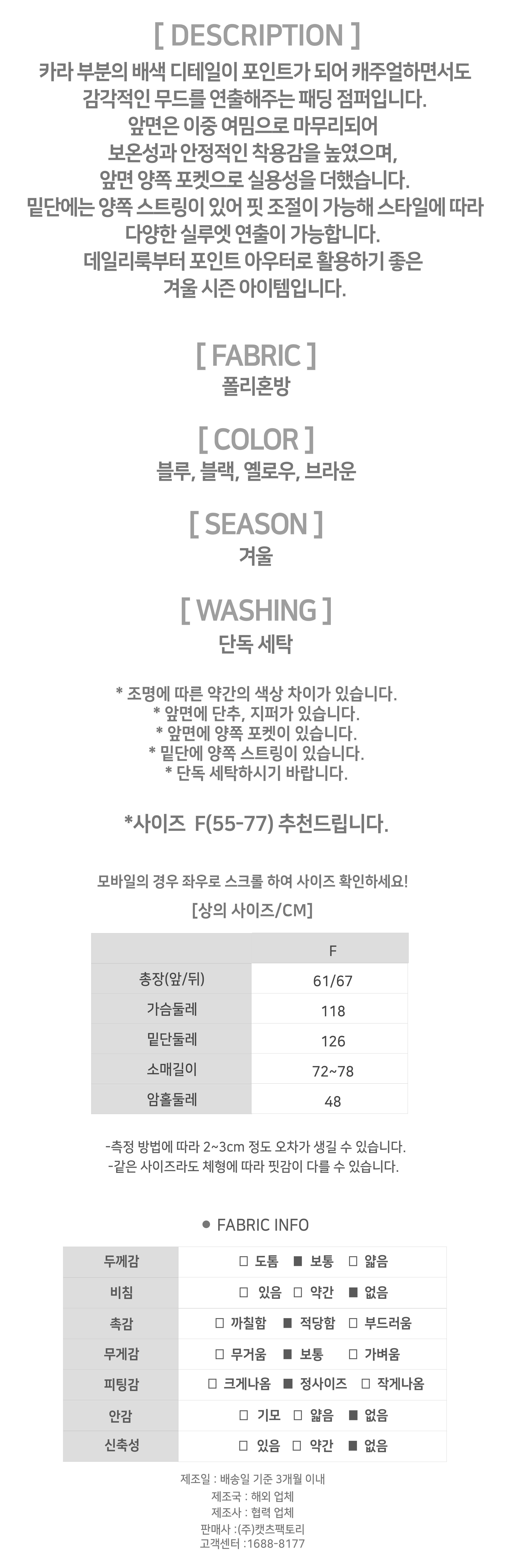 181449 ◈[당일발송] 배색 카라 스트링 패딩 점퍼 38880