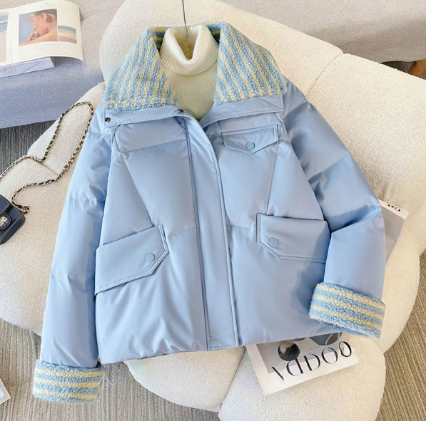 ◈[당일발송] 배색 카라 스트링 패딩 점퍼