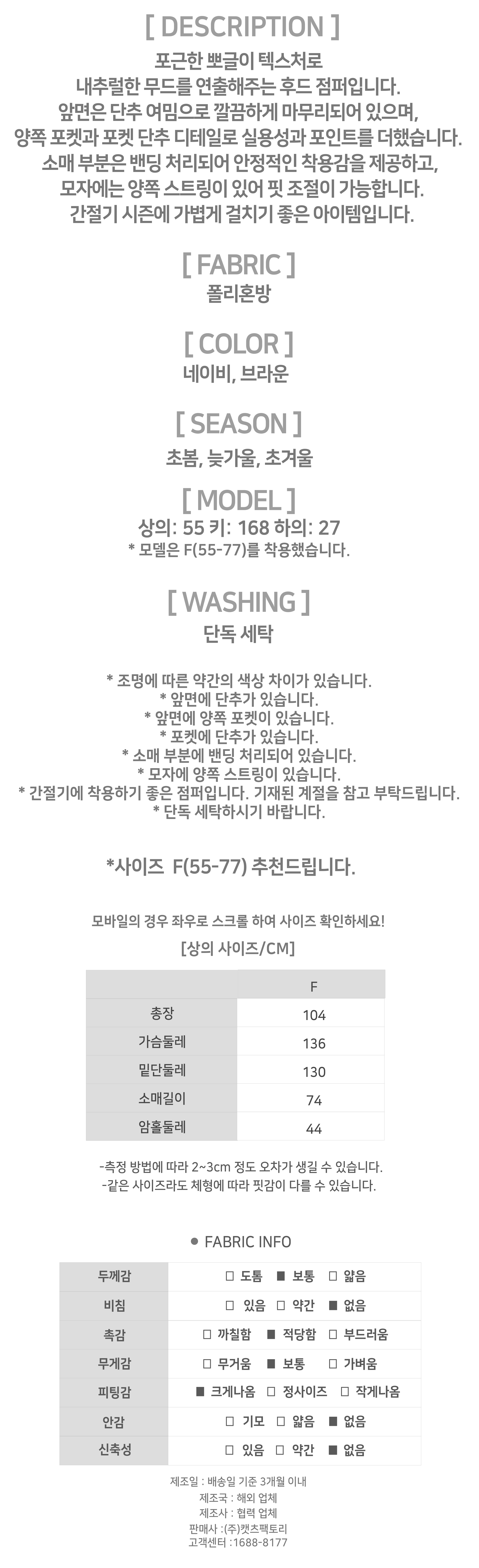 - 상품의 색상은 사용하시는 모니터 사양에 따라 실제 색상과 다소 차이가 있을 수 있으며, 이는 불량의 사유가 되지 않습니다.