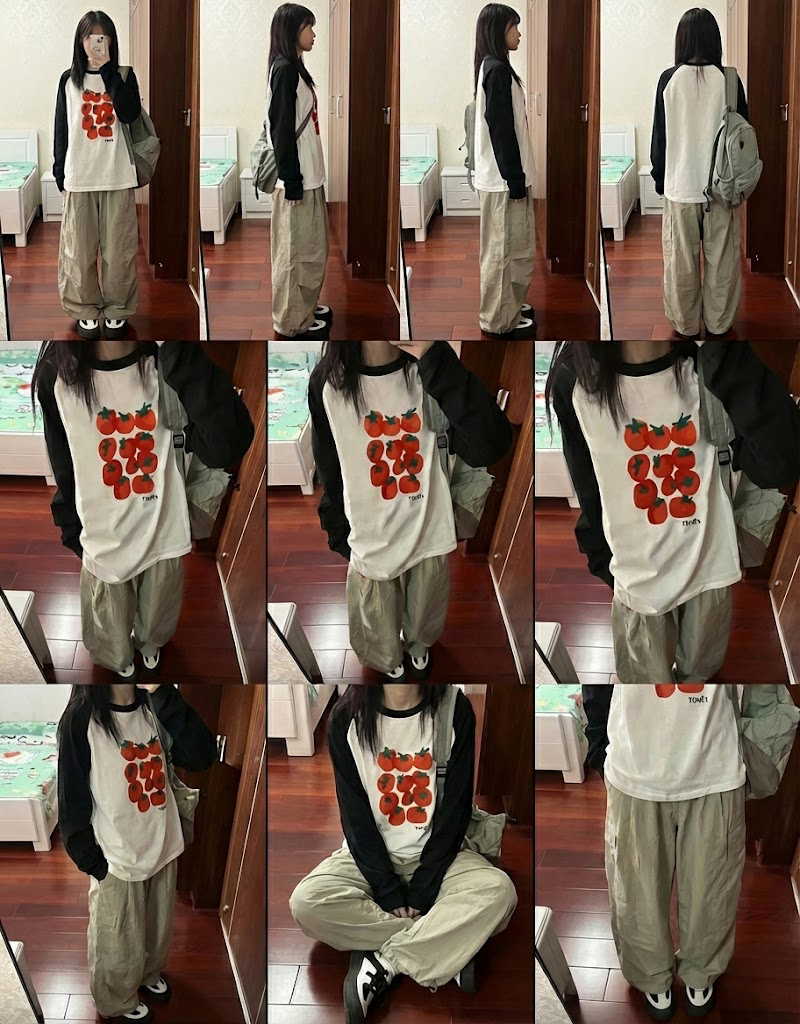 181917 [당일발송]토마토 배색 나그랑 긴팔티 16990
