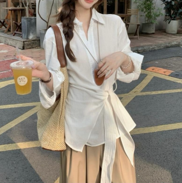 181926 ◈[당일발송] 내추럴 랩 오픈카라 블라우스 23480