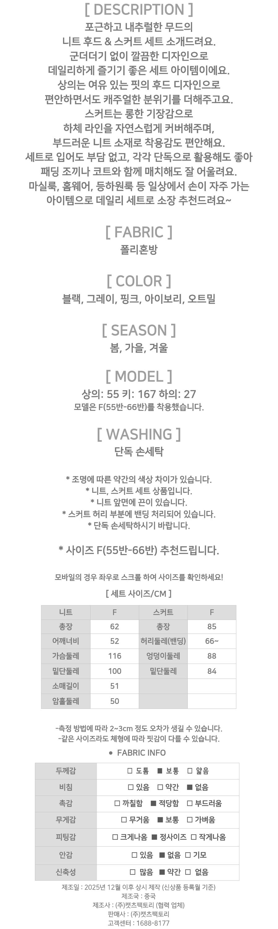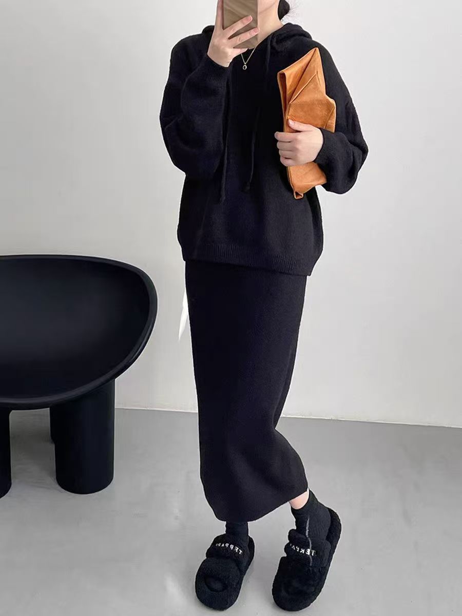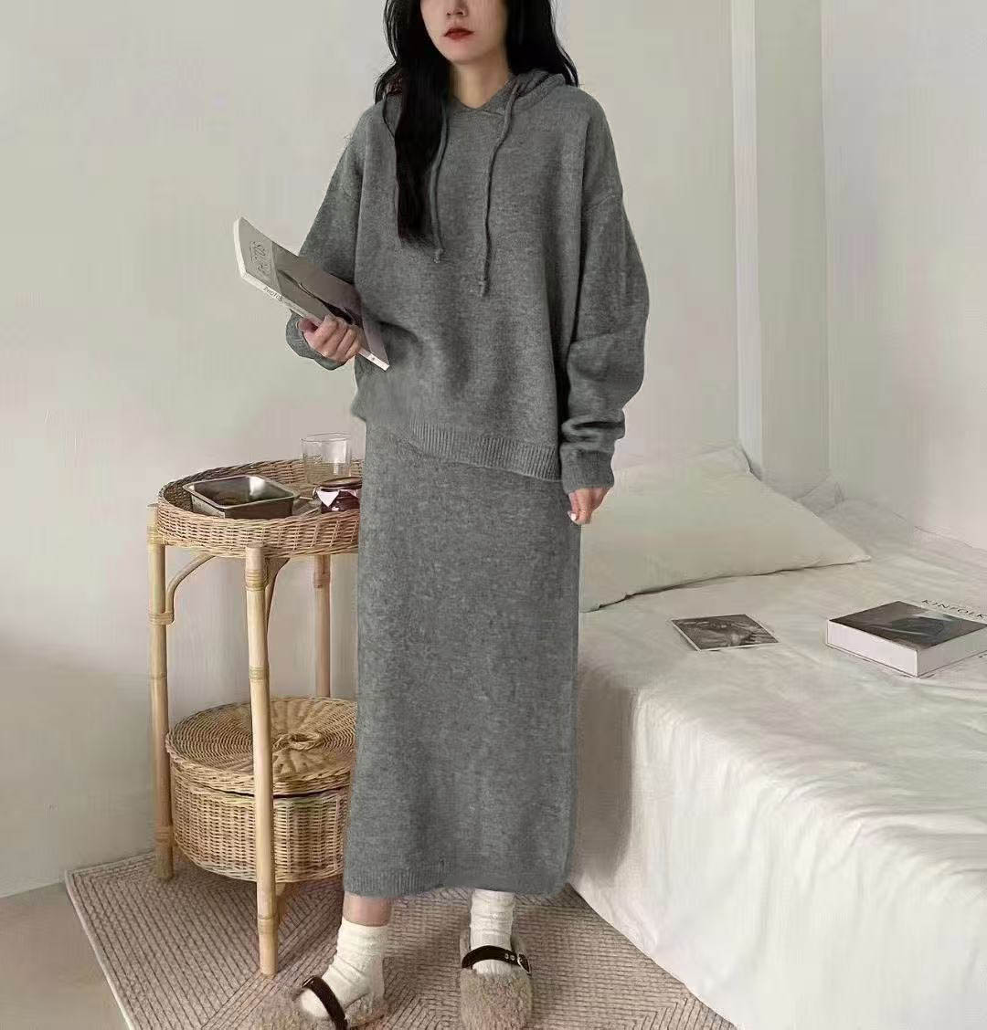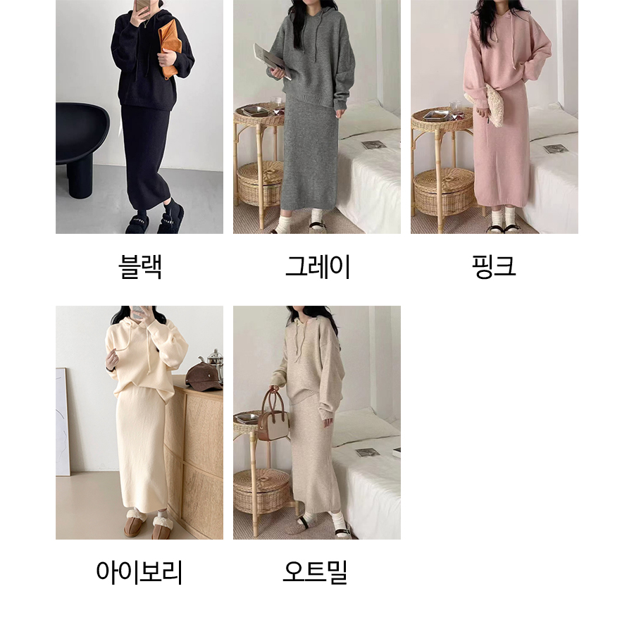 181993 ◈[당일발송] 데일리 포근 후드 니트 투피스 40780