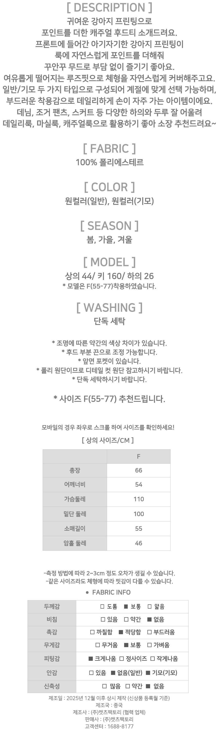 181995 ◈[당일발송] )데일리 퍼피 그래픽 후드티[일반/기모 2종류] 13880