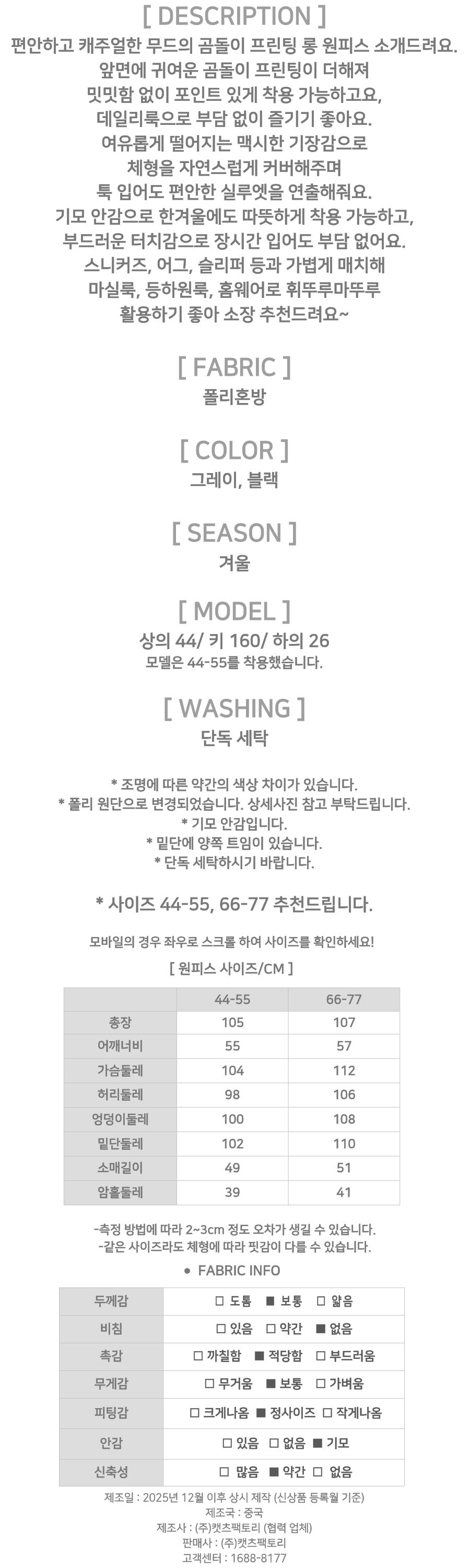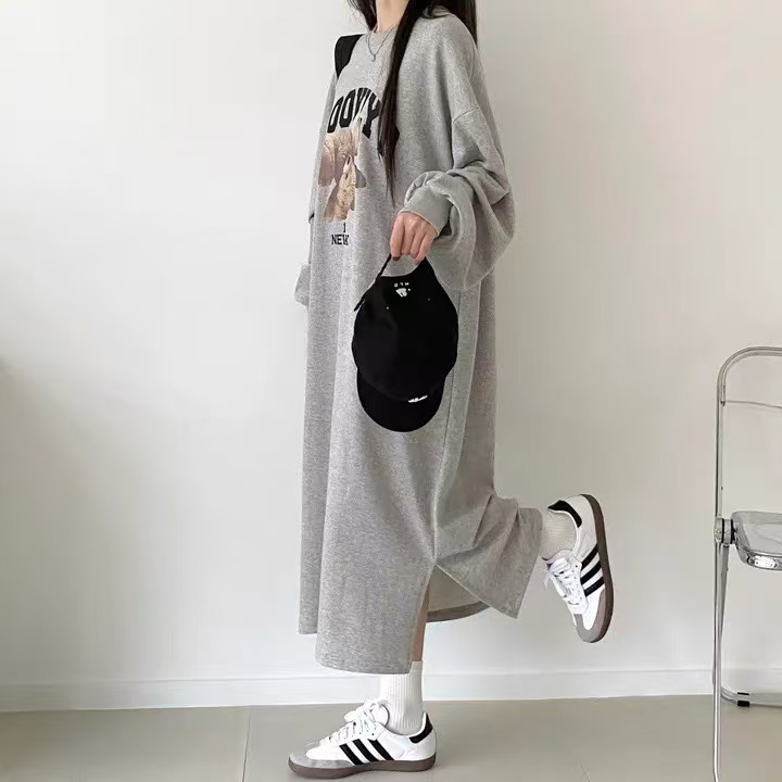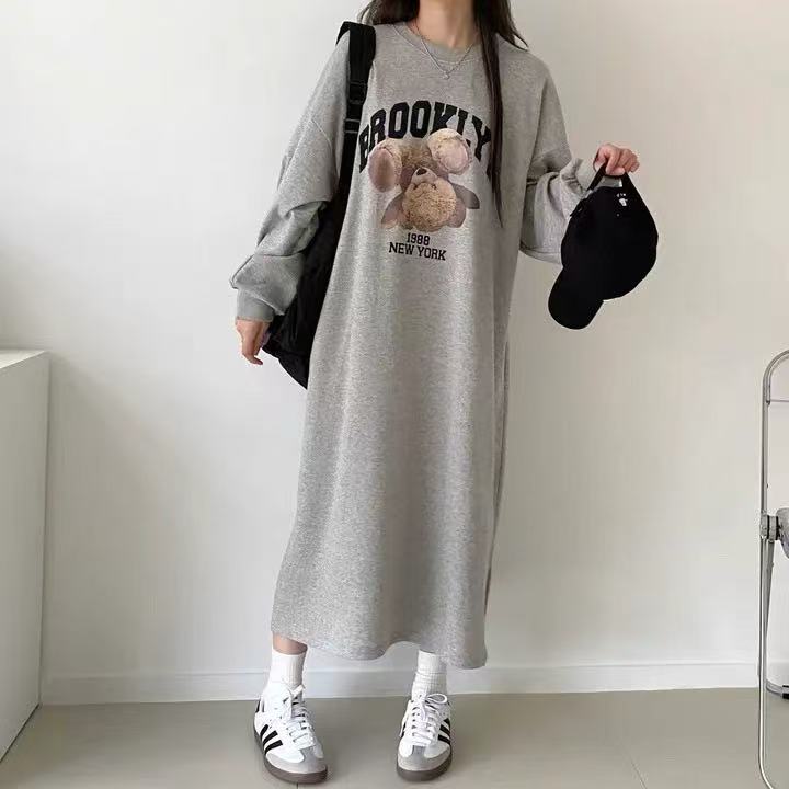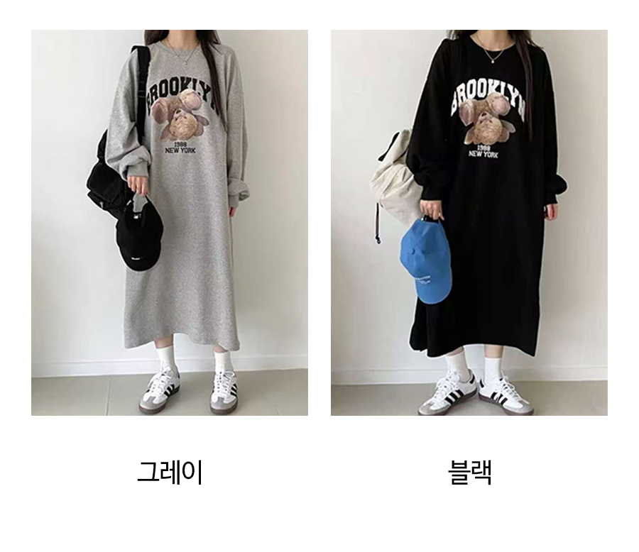 ◈[당일발송] 곰돌이 기모 캐주얼 맥시 원피스