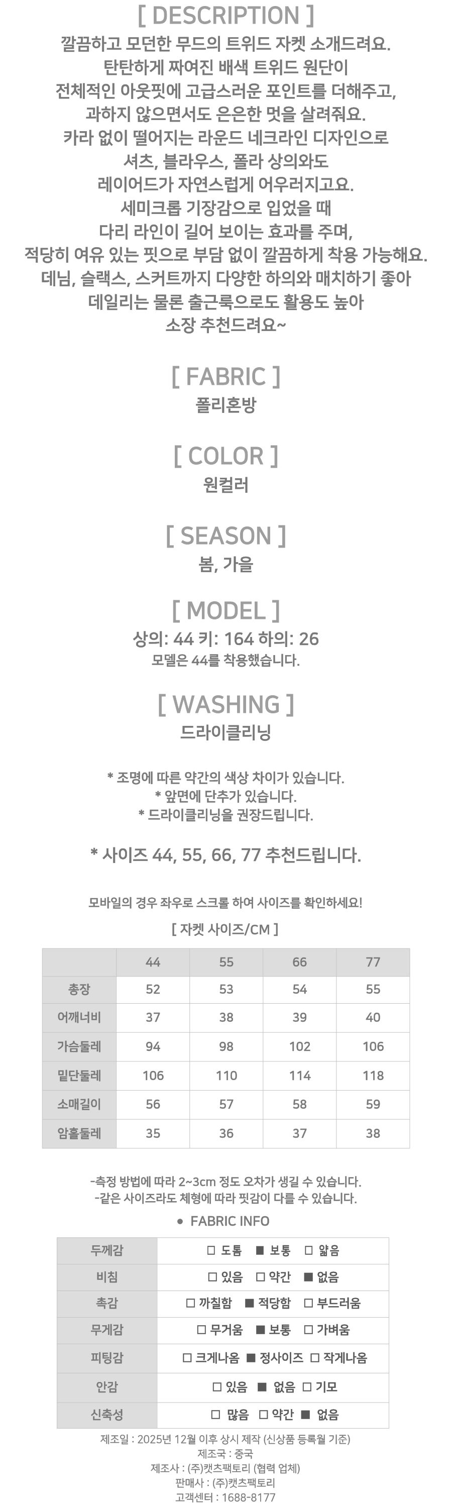 182004 ◈[당일발송] 모던 라운드 트위드 자켓 30580