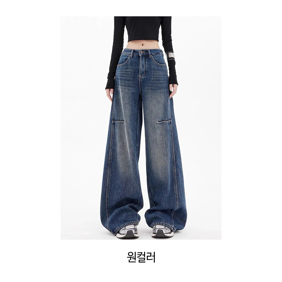 유니크 절개 롱 와이드 데님