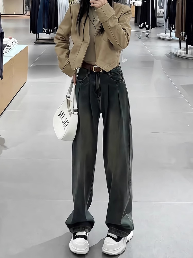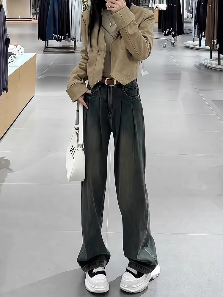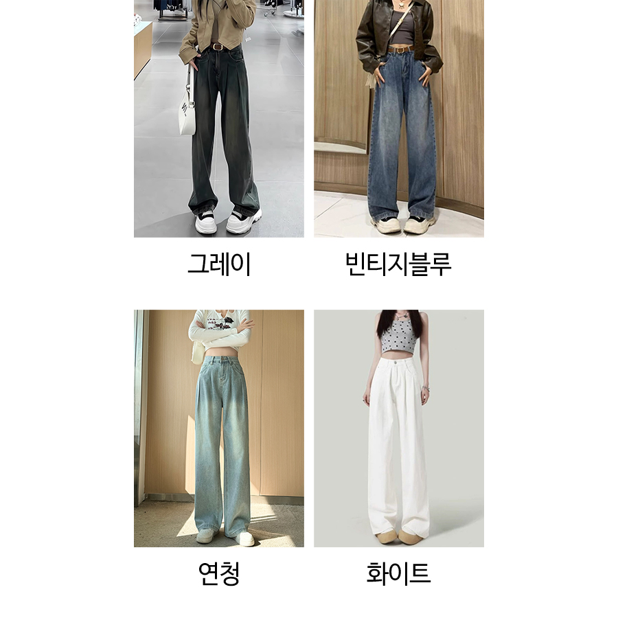 핀턱 워싱 롱 와이드 데님 팬츠