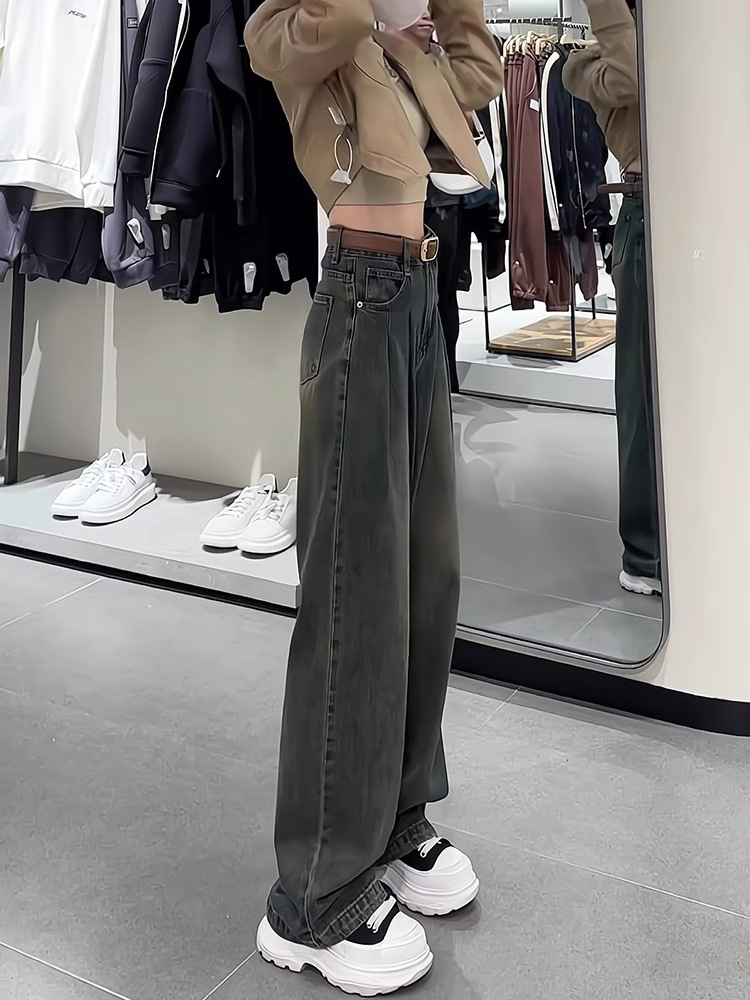 182151 핀턱 워싱 롱 와이드 데님 팬츠 23480