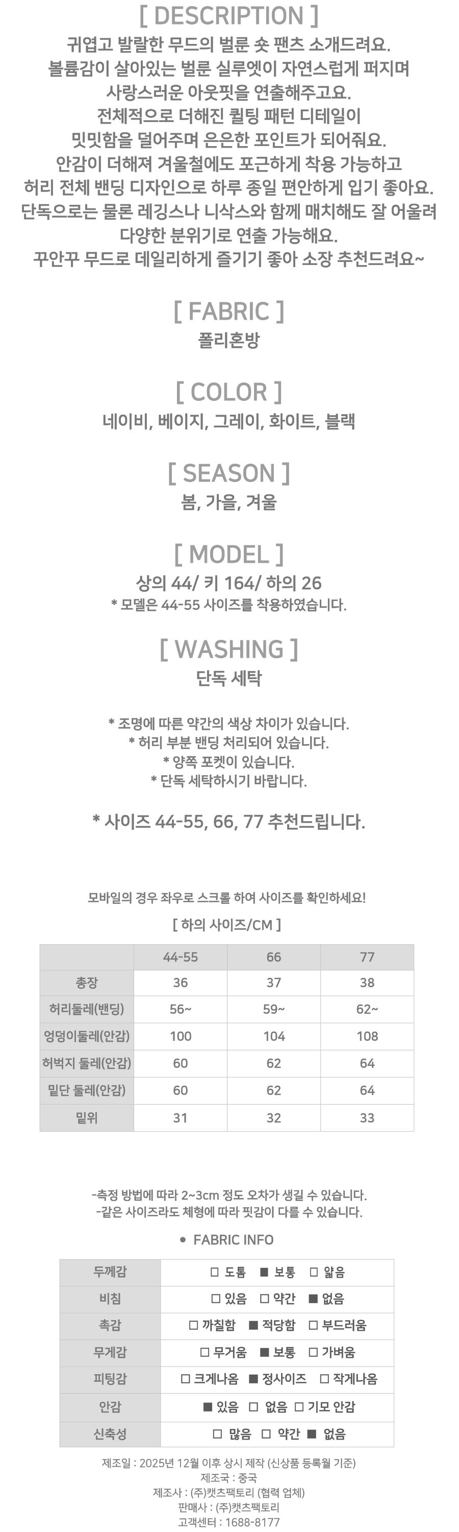 182158 퀼팅 벌룬 밴딩 숏 팬츠 21180