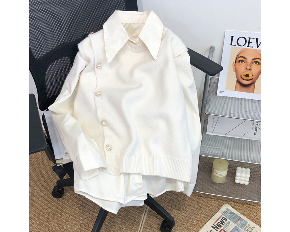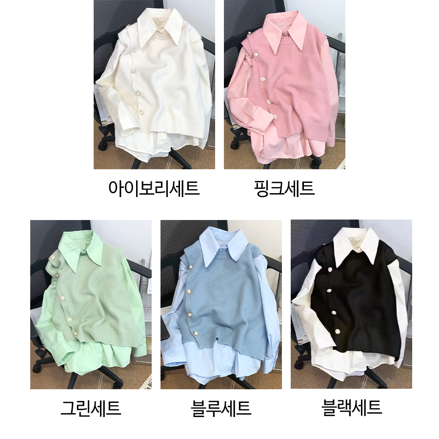 진주 포인트 언발 베스트&셔츠 2SET