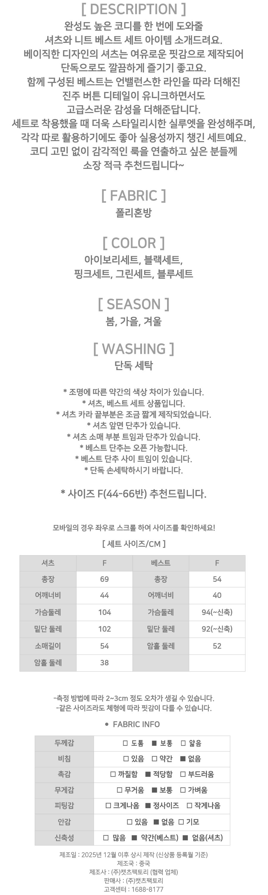 182172 진주 포인트 언발 베스트&셔츠 2SET 29380