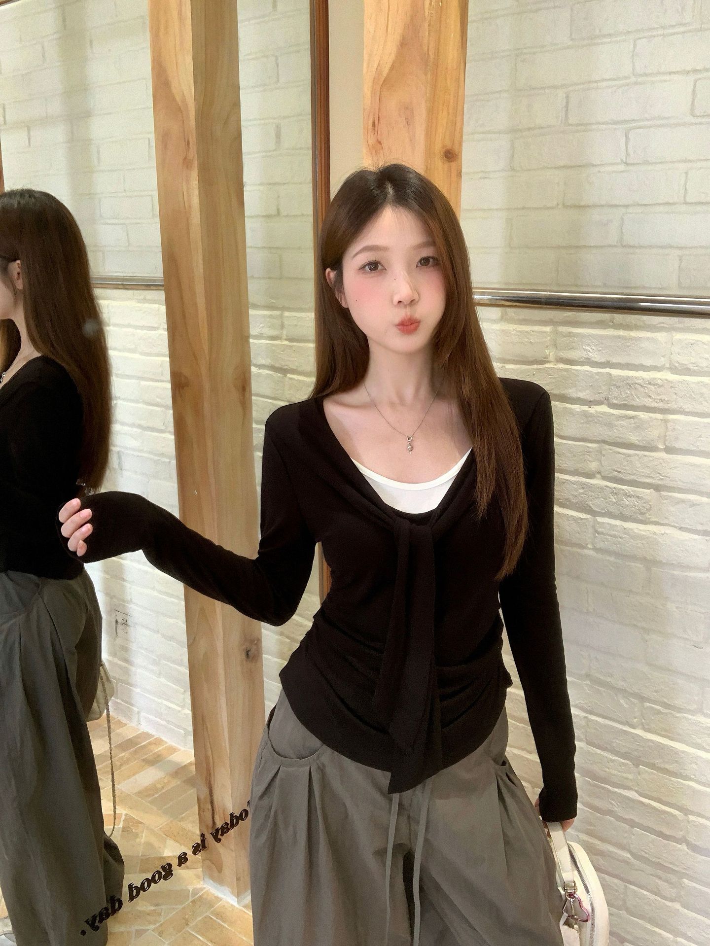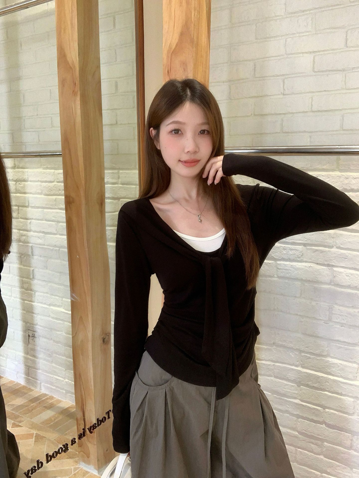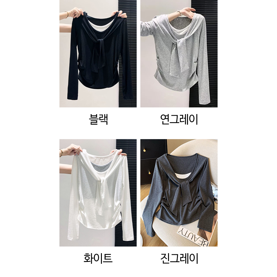 숄 레이어 꾸안꾸 슬림핏 긴팔티