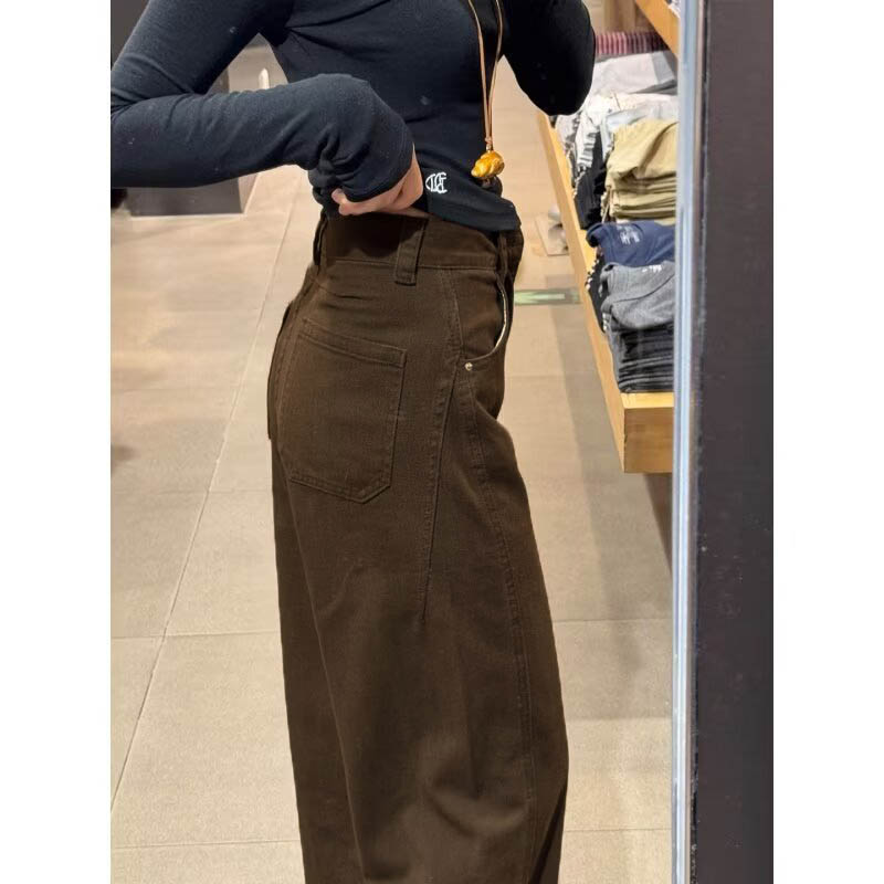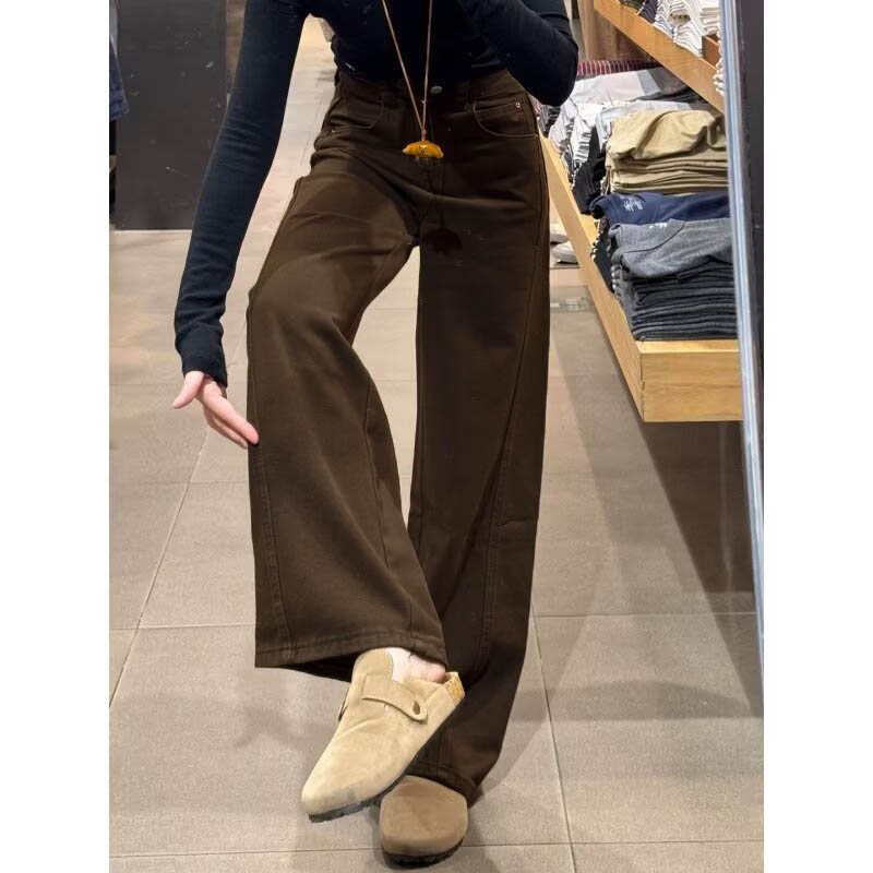 ◈[당일발송]딥브라운 기모 롱와이드 코튼팬츠