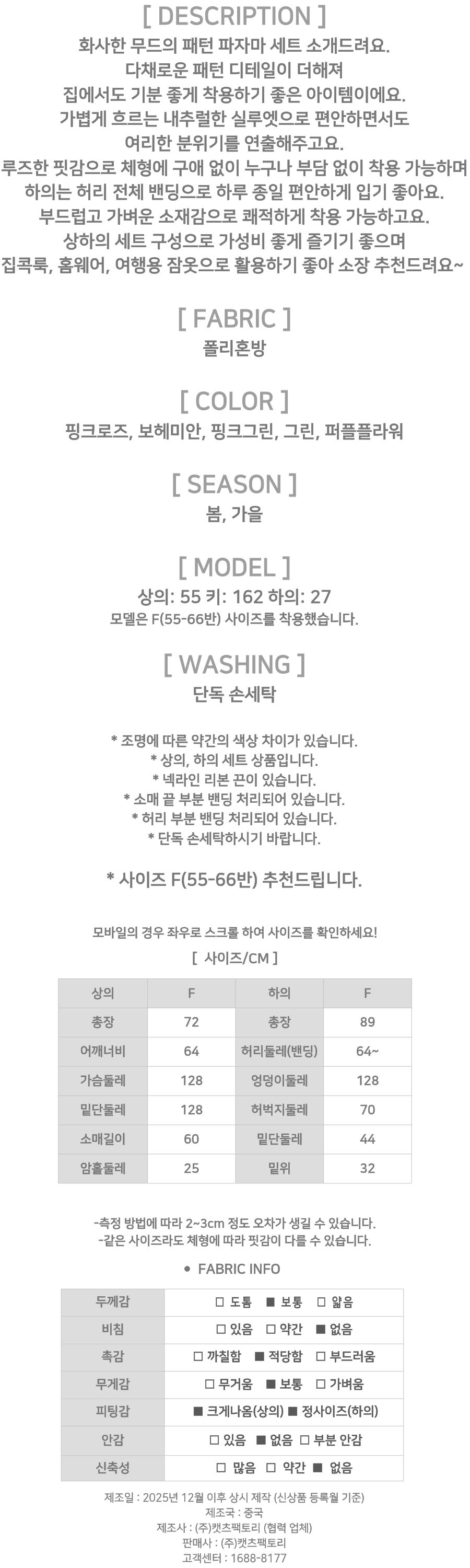 182293 내추럴 패턴 파자마 상하의 세트 23480