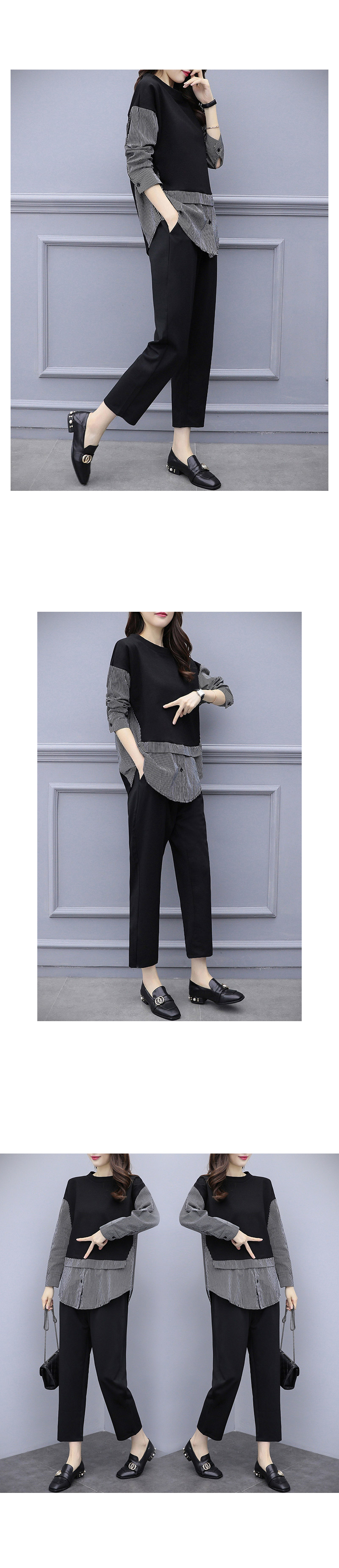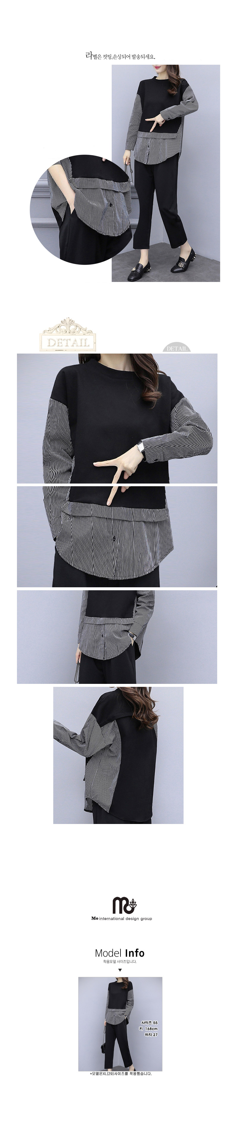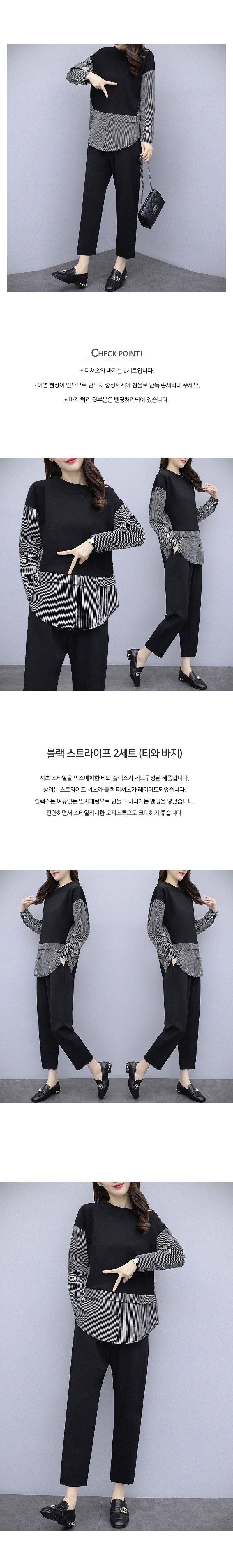 블랙 스트라이프 2세트(티와 바지)
