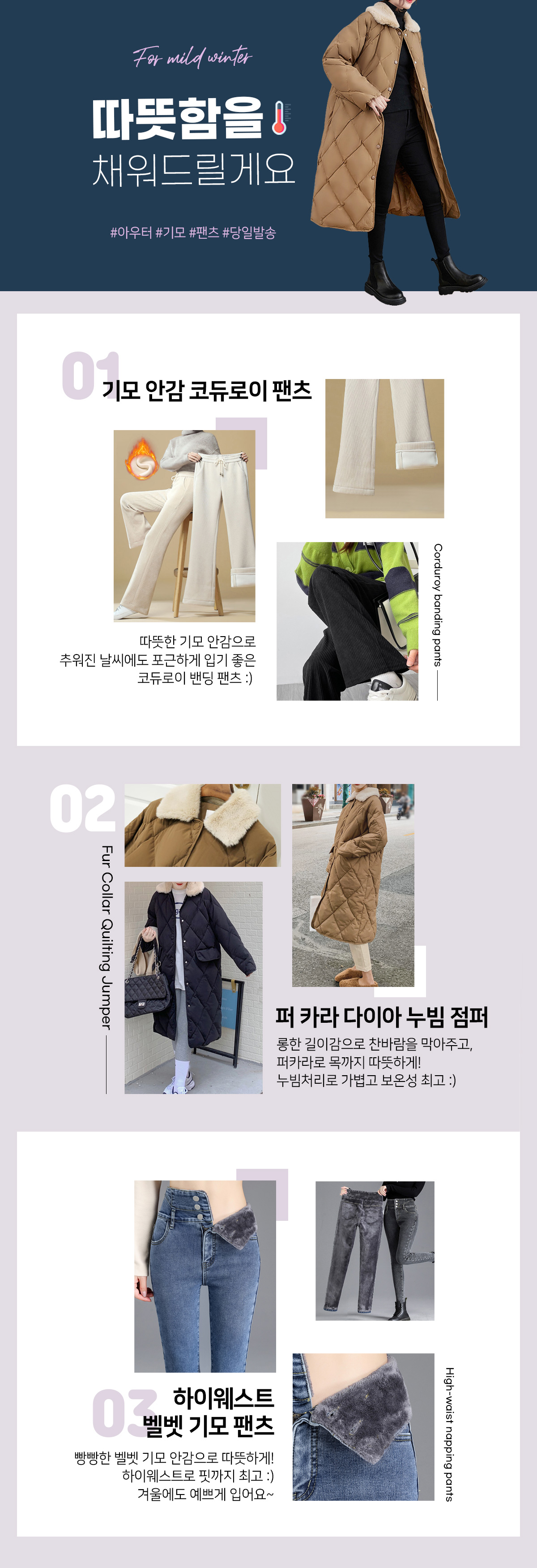 올 시즌 교복처럼 착용하기 좋은 따듯한~누빔팬츠랍니다! 퀄팅 바느질로 디테일을 더했구요, 밑단은 조거 팬츠 스타일로 멋스럽답니다~