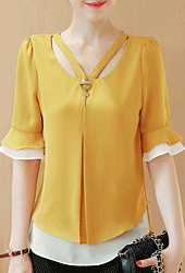 [당일발송]골드장식 쉬폰 배색 블라우스[BL#2373]
