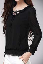 ◈[당일발송] 리본 포인트 프릴 쉬폰 블라우스 [BL#1309Y]