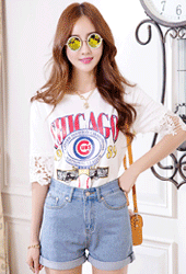 [당일발송]레트로 롤업 하이웨스트 숏 팬츠 [DN#250]