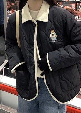 잔꽃 퀼팅 포근한 양털 안감 점퍼