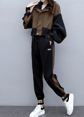루즈핏 캐주얼 배색 점퍼 조거 팬츠 2SET