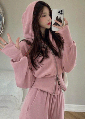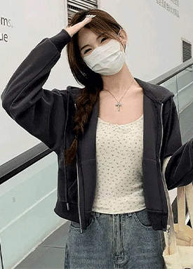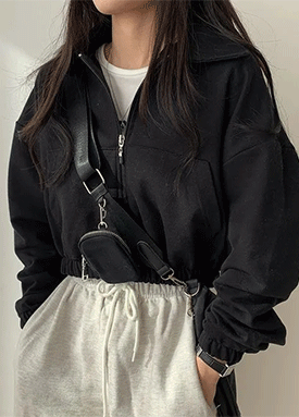 카라 집업 절개 크롭 자켓