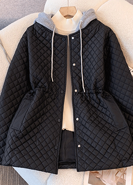 배색 후드 윈터 퀼팅 점퍼
