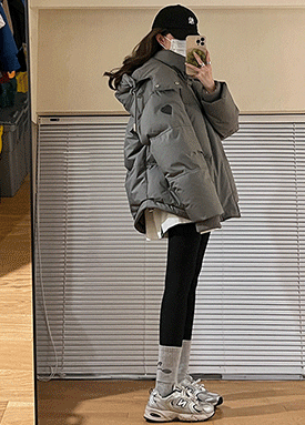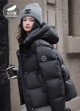 루즈핏 하트 웰론 후드 숏패딩