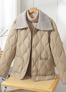 ★일요특가 자정마감 50%★.니트 카라 누빔 웰론 패딩 점퍼