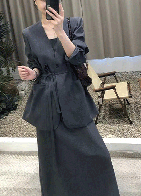 ★일요특가 자정마감 50%★포멀 브이넥 리본끈 자켓&나시 이너 원피스 2SET