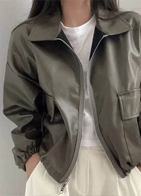 ★일요특가 자정마감 50%★루즈핏 카라 레더 자켓