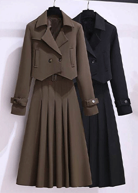 더블 버튼 카라 자켓&핀턱 스커트 2SET