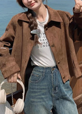 ★일요특가 자정마감 50%★스웨이드 카라 숏 자켓