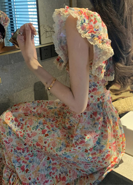 ◈[당일발송] 플라워 프릴 더블 끈 나시 원피스