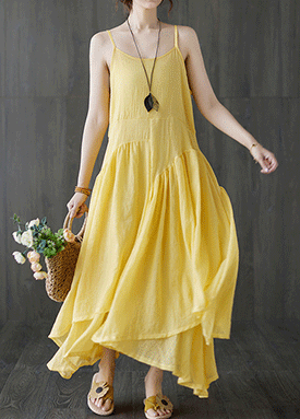 ◈[당일발송] 루즈핏 언발란스 셔링 끈나시 원피스