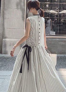 ◈[당일발송] 스트라이프 민소매 짜임 니트 원피스