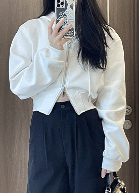 화이트 크롭 투웨이 후드집업[일반/기모 2종류]