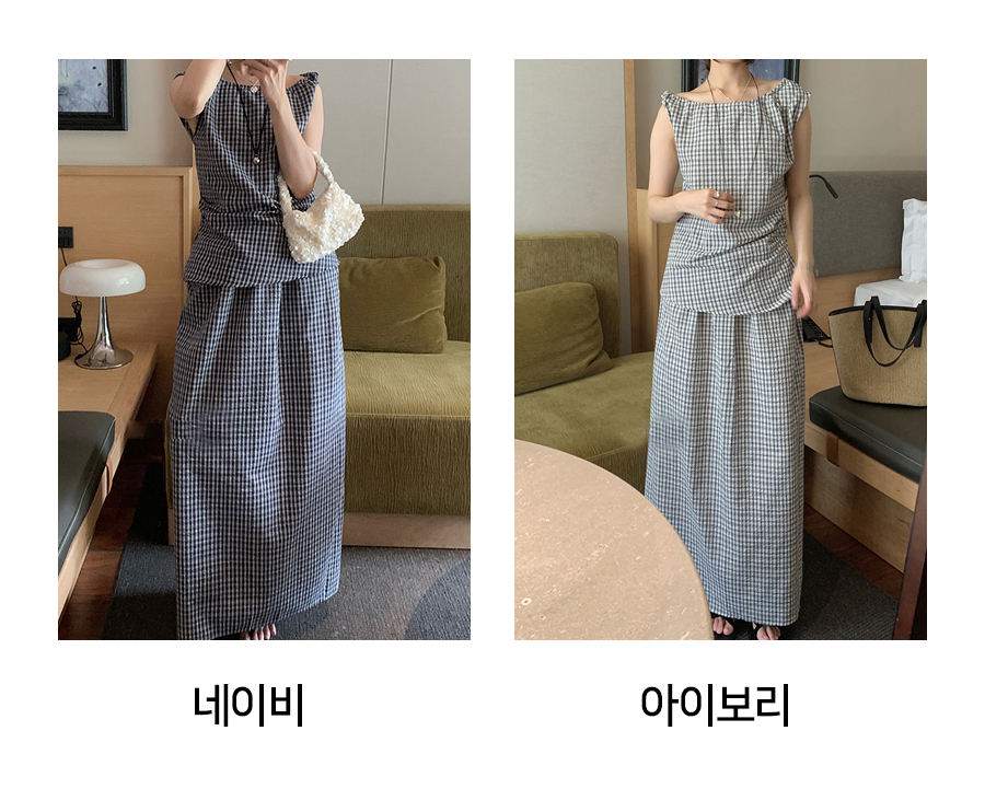◈[당일발송] 잔 체크 민소매&밴딩 롱 스커트 2SET