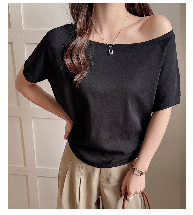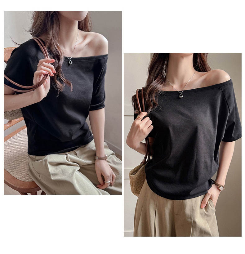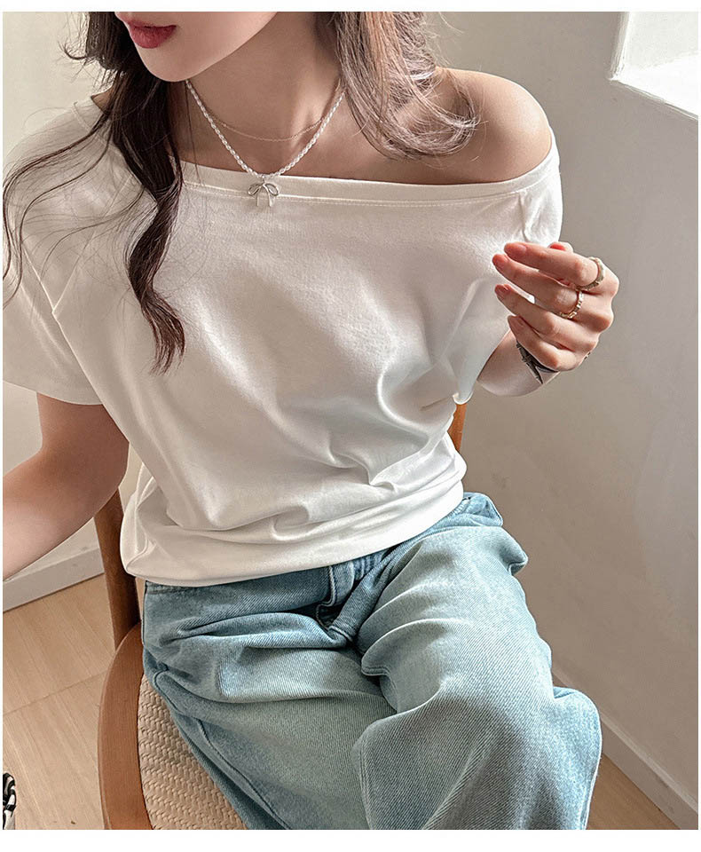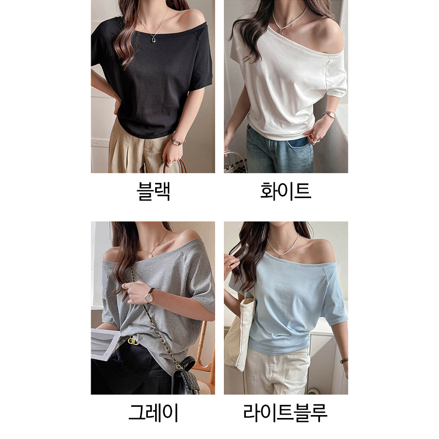 ◈[당일발송] .언발 오프숄더 심플 반팔티