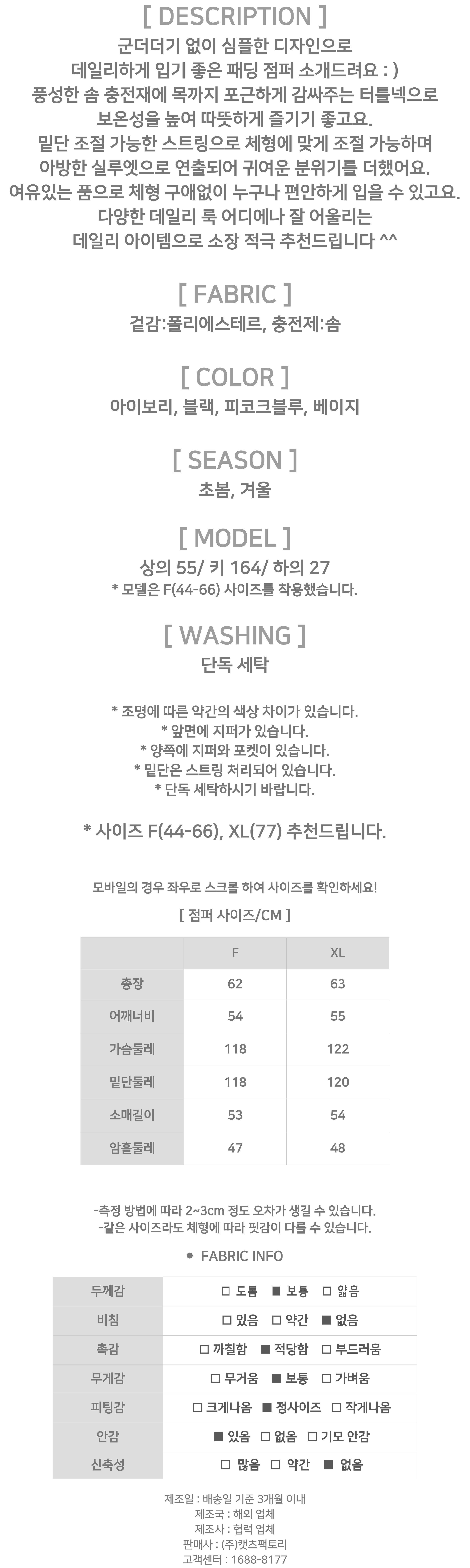 - 반품시 택배 포장을 수령한 대로 하지 않거나 부실하게 하여 택배사 운송도중 물품이 훼손, 오염되어 입고된 경우 (택배사 과실 제외) - 상품의 색상은 사용하시는 모니터 사양에 따라 실제 색상과 다소 차이가 있을 수 있으며, 이는 불량의 사유가 되지 않습니다. - 제품 사이즈는 측정 방식에 따라 2~3cm의 오차가 있을 수 있으며, 이는 불량의 사유가 되지 않습니다.