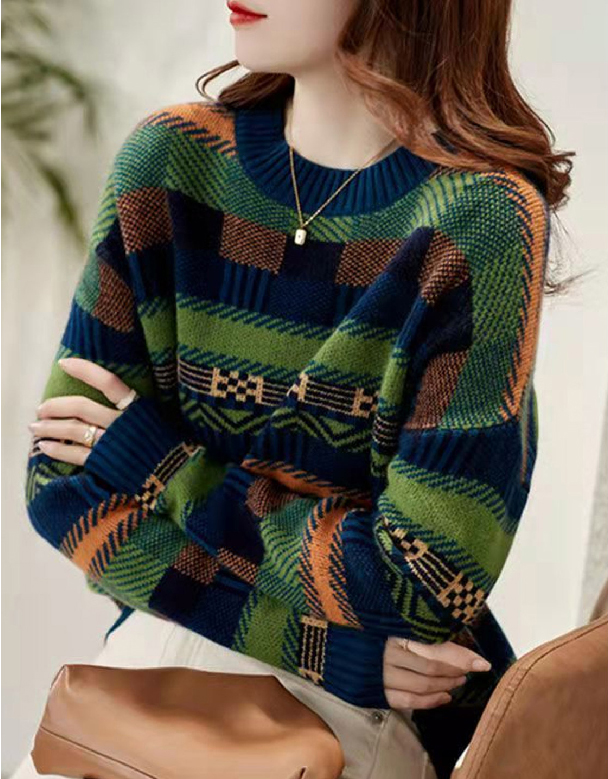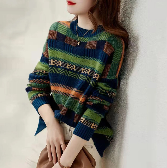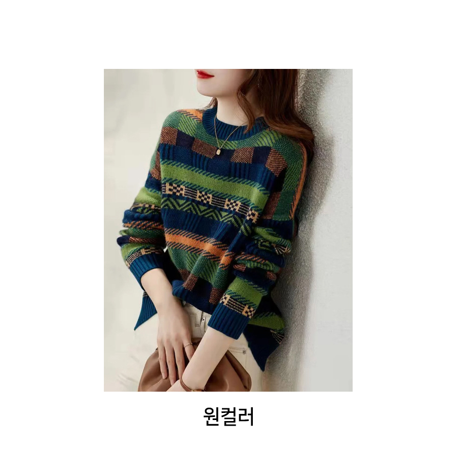 빈티지 패턴 배색 니트 풀오버